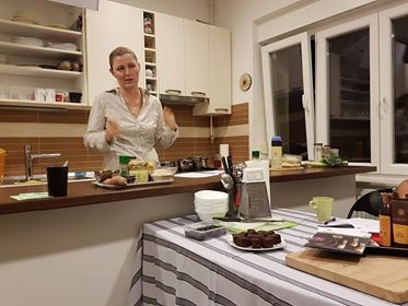 Na radionici kuhanja radili smo doručak promjenjive vate- najmasniji i najslasniji, rekla bi naša mr. sc. Irena Švenda. Radio se i pirov griz sa vata začinima i voćem. Vruća Pita dobila je rižine pahuljice sa smokvama i kardamomom kako bi umirila ovaj tip doshe, a stabilna Kapha pojela je ljutu juhu sa zelenim povrćem i ječmenim grizom.
